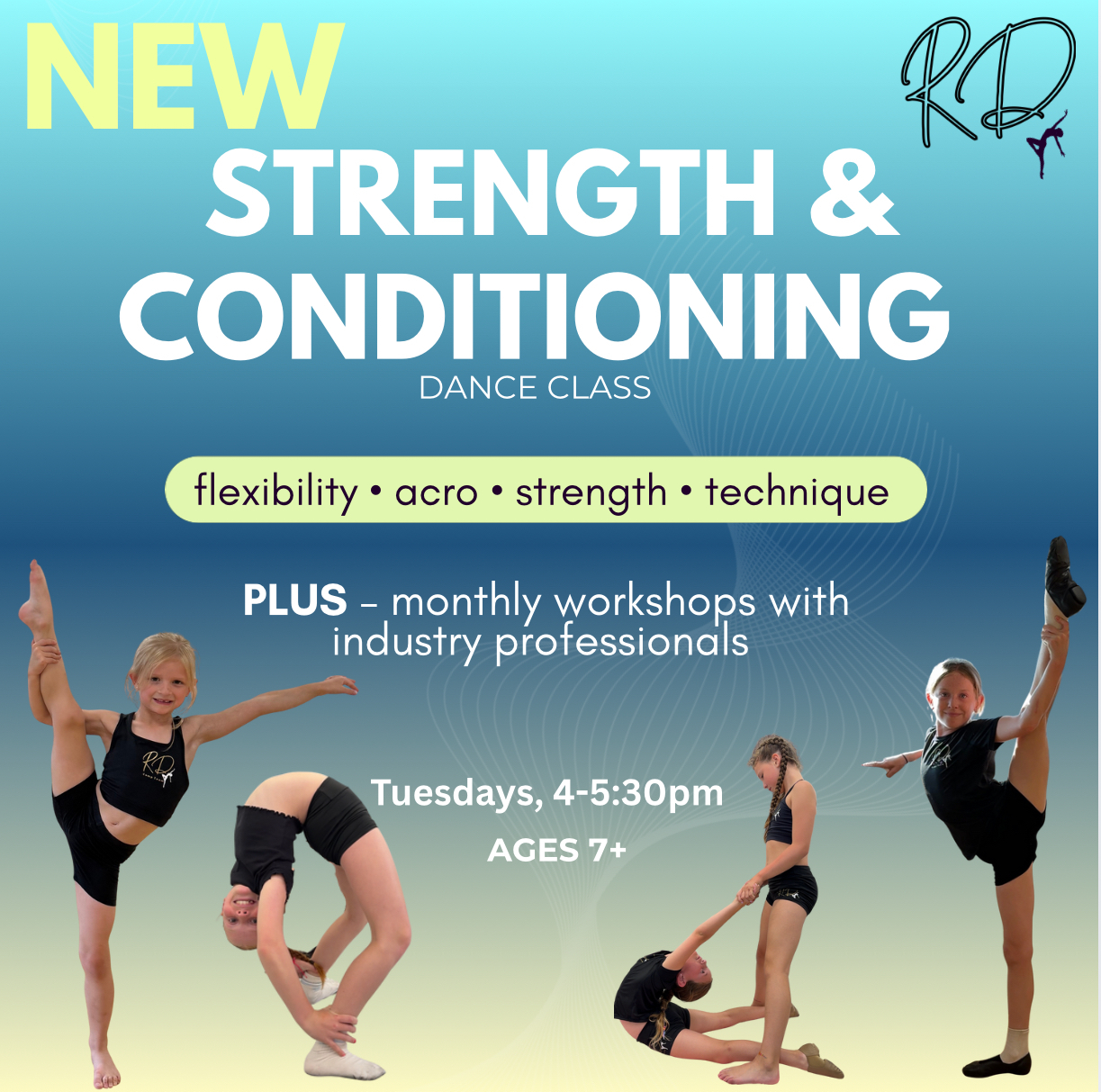 Our strength & conditioning class is designed for dancers ages 7+ who want to level up and become the best dancer they can be.